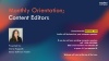 The next monthly orientation (Content Editor Edition) training will be held on:Friday, January 9th, at 10:00 AM PT.